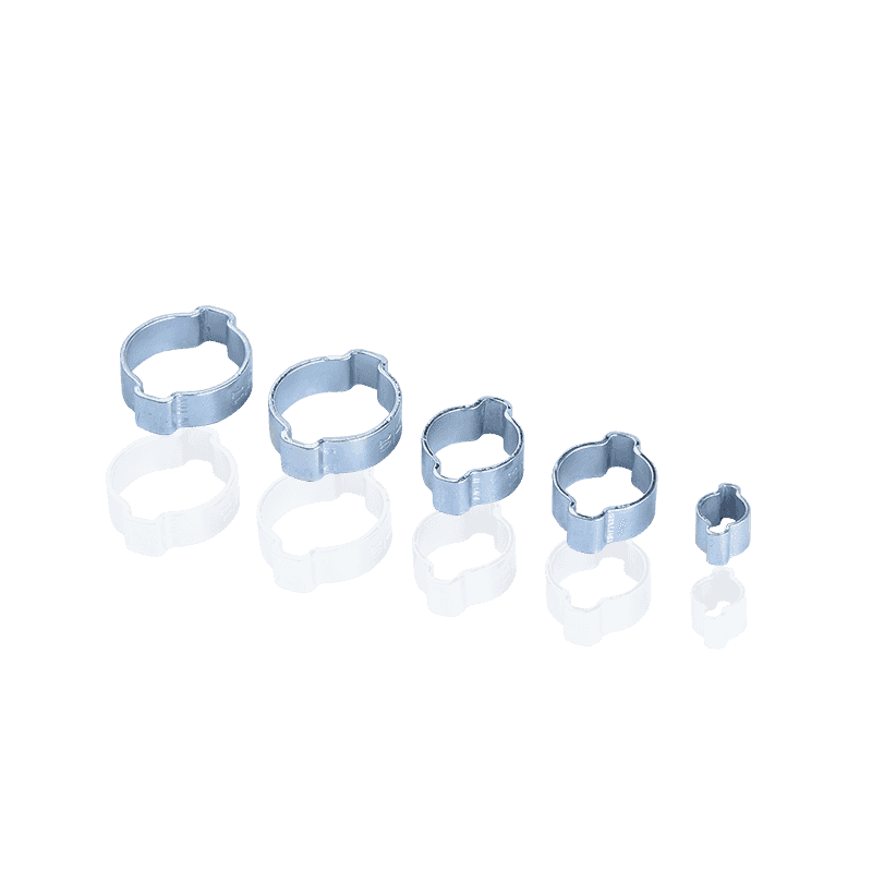 Éagsúil ón clampán aon-chluas traidisiúnta, cruthaíonn an clampán cluas dhúbailte fórsa clampála níos cothroime agus níos cumhachtaí trí fhórsa a chur i bhfeidhm ar an dá thaobh ag an am céanna, rud a chosc go héifeachtach an píobán nó an cábla a scaoileadh nó titim as mar gheall ar chreathadh, athruithe brú. agus cúiseanna eile le linn úsáide. A bhuíochas dá dhearadh uathúil, is féidir leis an clamp chluas dúbailte dul i ngleic go héasca le raon níos leithne trastomhais píobáin, agus féadann sé socrú cobhsaí a bhaint amach ó phíobáin bheaga go tiubh chun freastal ar riachtanais úsáide i gcásanna éagsúla.